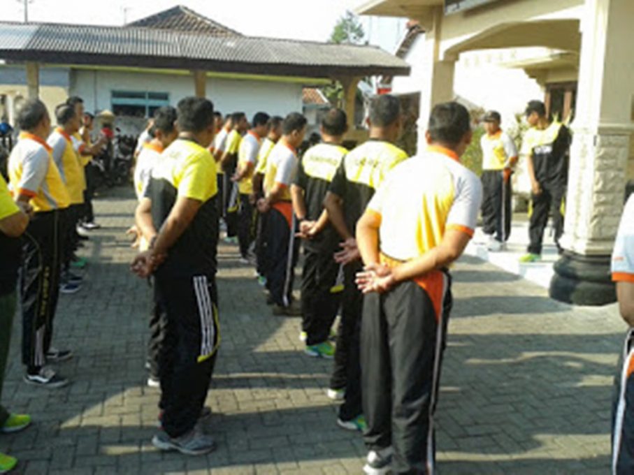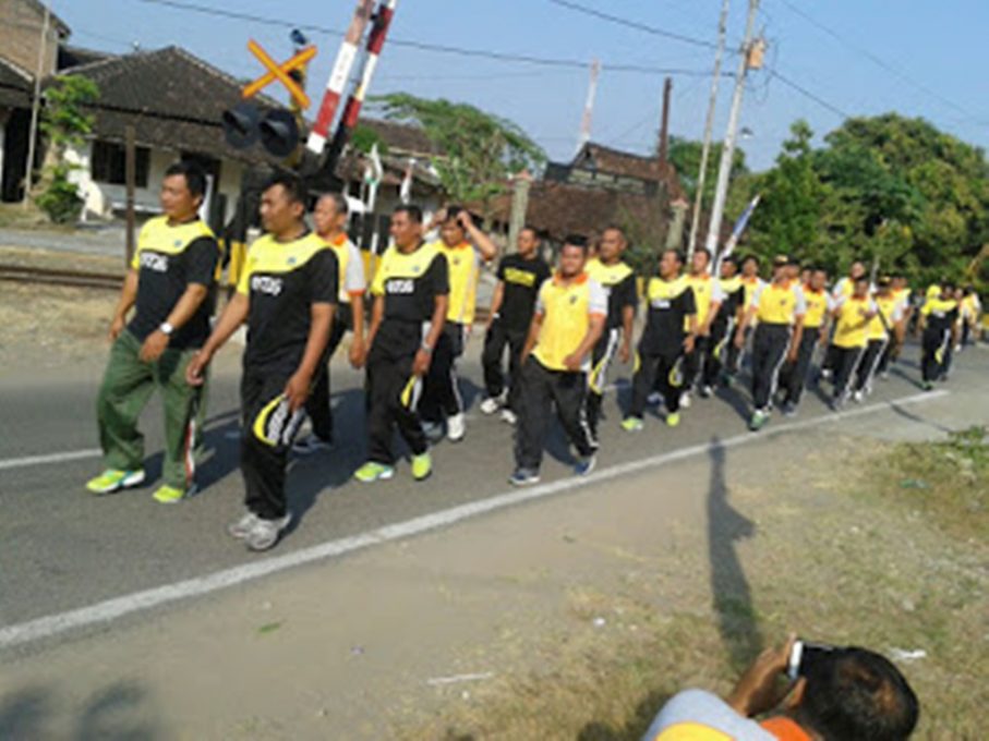 Apel dan jalan sehat bersama Polsek Nguter dan Koramil 02, Jumat (25/8/2017). (FokusJateng/Istimewa)