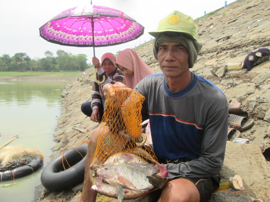 Pangat sendiri sehari-hari selain mencari ikan juga bekerja sebagai kuli bangunan. Lantaran baru panen ikan di waduk, maka dia sementara waktu libur bekerja.