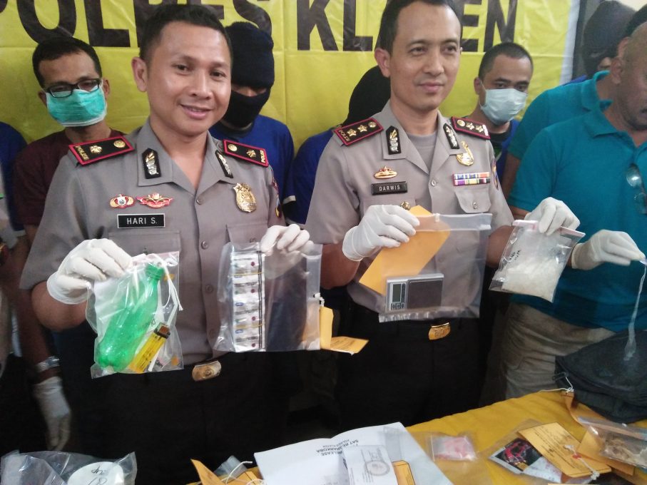 Enam tersangka pengedar narkoba beserta barang bukti diamankan kepolisian polres Klaten, Selasa 29 Agustus 2017. (Joko Larsono/Fokus Jateng)