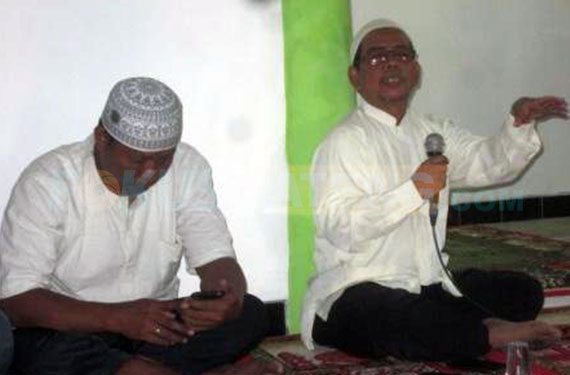 Haji Shamsuri memberikan ceramah setelah pembagian daging hewan kurban di Masjid Al Barokah Tanon.
