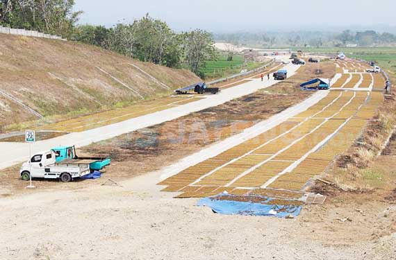 Inisiatif petani ini lantaran proses pengeringan di dataran tinggi tidak maksimal. Sehingga proyek tol yang masih tahap pengerjaan itu berubah menjadi hamparan tembakau yang dikeringkan. ”Di atas, lereng Merapi-Merbabu sering mendung Mas. Makanya kami cari sinar matahari di jalan tol,” kata Muslih (25), petani tembakau Desa Wonodoyo, Kecamatan Cepogo, Sabtu 2 September 2017.