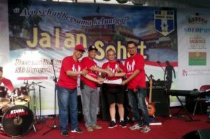 Selain memperingati Hari Olahraga Nasional (Haornas), jalan sehat tersebut juga bagian dari pengalangan dana untuk membangun aula di sekolah tersebut.