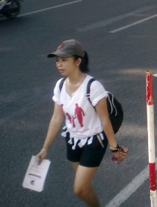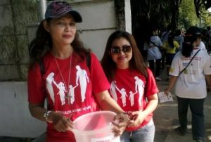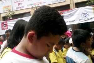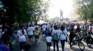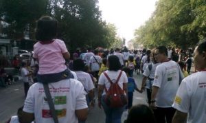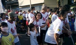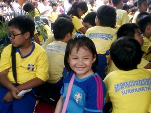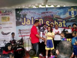 Salah seorang peserta Jalan Sehat Bersama di SD Pangudi Luhur St Timotius Solo yang diikuti ribuan orang yang terdiri dari, orang tua dan siswa, guru, dan alumni, Minggu (10/9/ 2017). (credit-DidikKartika/Fokusjateng.com)