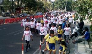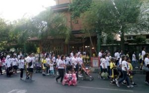 Kemeriahan acara Jalan Sehat Bersama di SD Pangudi Luhur St Timotius Solo yang diikuti ribuan orang yang terdiri dari, orang tua dan siswa, guru, dan alumni, Minggu (10/9/ 2017). (credit-DidikKartika/Fokusjateng.com)