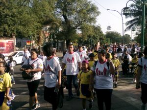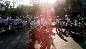 FOKUS JATENG – SOLO – Ribuan orang yang terdiri dari, orang tua dan siswa dari SD Pangudi Luhur St Timotius Solo, mengikuti kegiatan jalan sehat bersama, Minggu (10/9/ 2017). Selain orang tua dan murid, jalan sehat ini juga diikuti oleh para guru dan alumni.