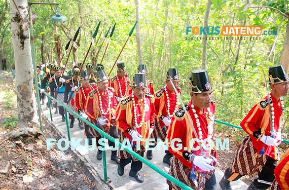 Prajurit Keraton Kasunanan Surakarta Hadiningrat ikuti kirab Haul Ki Ageng Singoprono di Gunung Tugel, Nglembi, Sambi, Boyolali. (credit-Ichwan-Prihantoro/Fokusjateng.com)