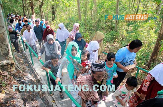Para peziarah mengikuti prosesi arak-arakan dua gunungan di Gunung Tugel dalam rangkaian kirab Ki Ageng Singoprono, Minggu 910/9/2017) (credit-Ichwan-Prihantoro/Fokusjateng.com)