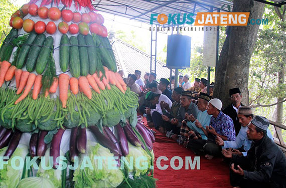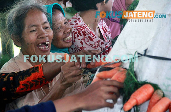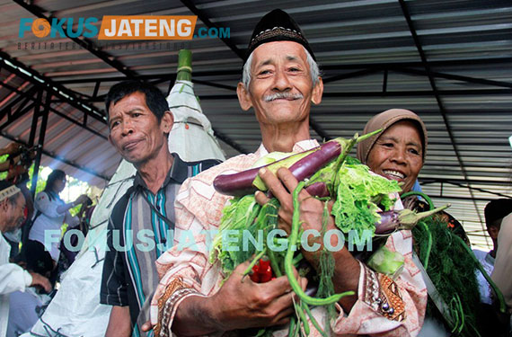 Peziarah mendapatkan sayuran dari gunungan kirab Haul Ki Ageng Singoprono, Minggu (10/9/2017). (credit-Ichwan-Prihantoro/Fokusjateng.com)