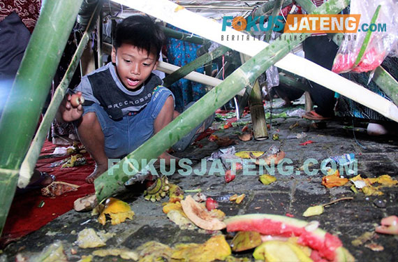 Peziarah berebut sayuran dari gunungan kirab Haul Ki Ageng Singoprono, Minggu (10/9/2017). (credit-Ichwan-Prihantoro/Fokusjateng.com)
