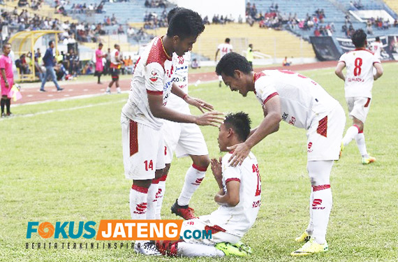 Ekspresi Rudiyana (tengah) usai mencetak gol di Stadion Manahan. (credit-Dok.Persis-Solo/Fokusjateng.com)
