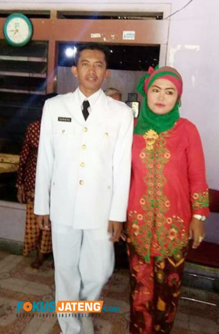 Kades Nanggulan, Kecamatan Bayat, Klaten, foto bersama sang istri usai dilantik Rabu 4 Oktober 2017. (credit-Joko-Larsono/Fokusjateng.com)