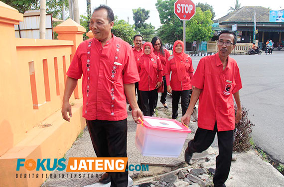 Pengurus DPC PDI Perjuangan Boyolali saat mengantar berkas administrasi peserta Pemilu 2019 di kantor KPUD Boyolali, Rabu 11 Oktober 2017. (credit-Ichwan-Prihantoro/Fokusjateng.com)