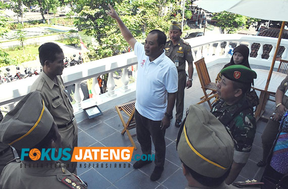 Juliyatmono juga menyinggung ukuran tiang bendera di halaman kantor Satpol PP yang terlihat kurang pas apabila dibandingkan dengan tinggi gedung. “Gedung gagah tapi cagak bendera merah putih kok sak tumlik ngono. Ganti sik gagah, rodo dhuwur. Konangan to kowe. Dibenahi semua yang bagus,” ujar orang nomor satu di Karanganyar ini sembari tertawa.
