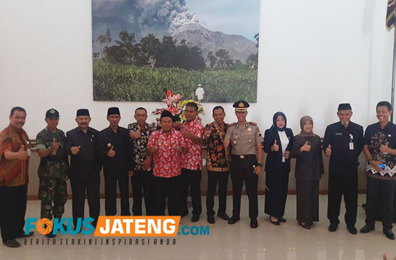 Wabup Boyolali M. Said Hidayat dan Kapolres Boyolali AKBP Aries Andhi foto bersama dengan pejabat lain usai penandatanganan MoU pengawasan dana desa di Gedung Putih Kantor Bupati Boyolali, Selasa 31 Oktober 2017. (credit-Yulianto/Fokusjateng.com)