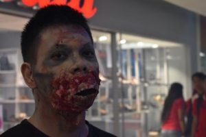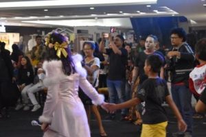 Menyusul kemudian penampilan komunitas cost play dari Japan Community dengan menghadirkan kostum dan make-up karakter yang begitu menyeramkan. Tak jarang pengunjung mall yang mengambil moment tersebut untuk berfoto bersama. Tapi tak jarang pula ada yang lari terbirit-birit saat ‘para hantu’ berlari menyerbu untuk mengajaknya nge-dance.