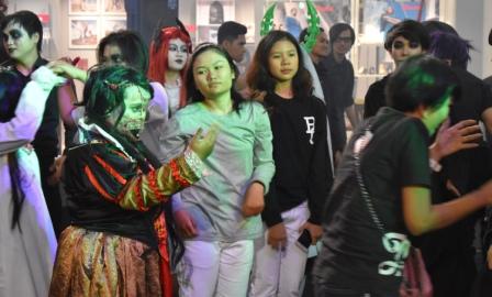 Menyusul kemudian penampilan komunitas cost play dari Japan Community dengan menghadirkan kostum dan make-up karakter yang begitu menyeramkan. Tak jarang pengunjung mall yang mengambil moment tersebut untuk berfoto bersama. Tapi tak jarang pula ada yang lari terbirit-birit saat ‘para hantu’ berlari menyerbu untuk mengajaknya nge-dance.