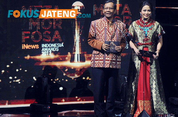 Mantan Ketua MK Mahfud MD membacakan pemenang Indonesia Award 2017 di Concert Hall iNews Center Jakarta, Selasa malam 31 Oktober 2017. (credit-Dok.Diskominfo-Boyolali/Fokusjateng.com)