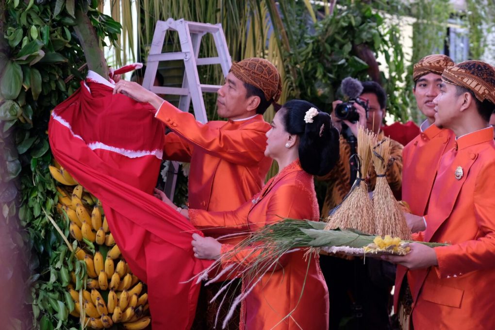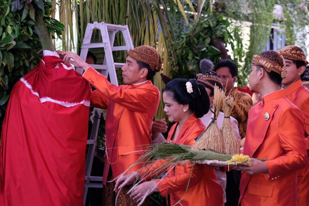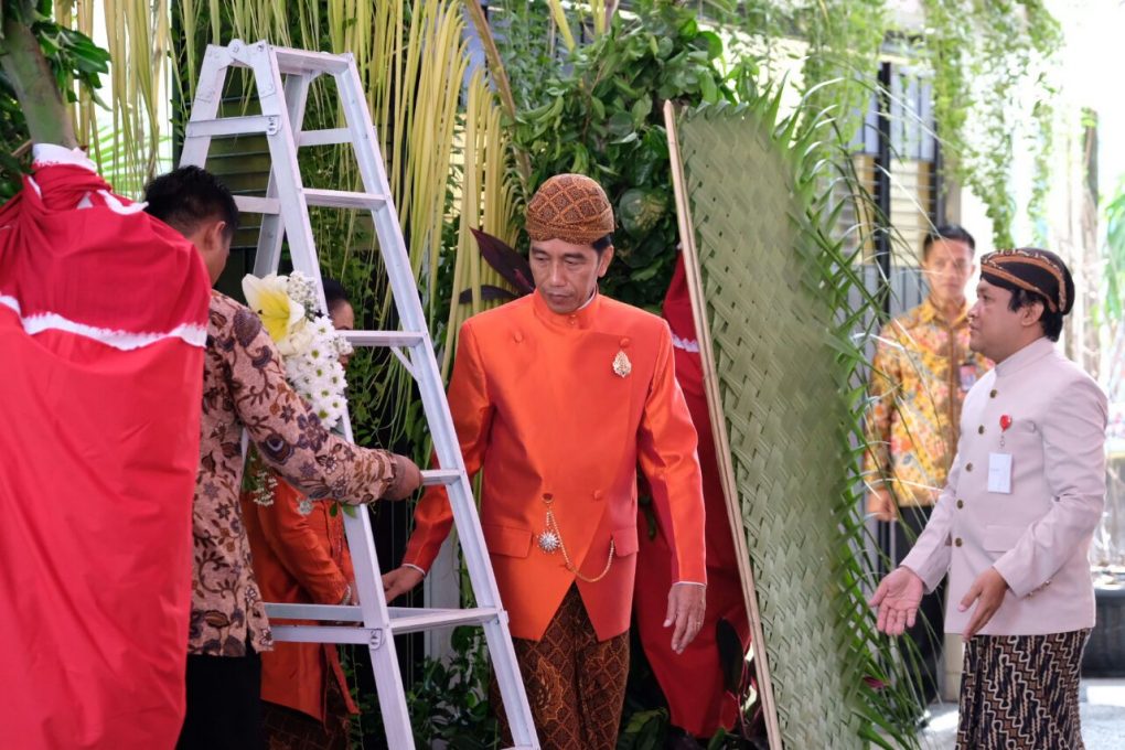 Presiden Jokowi memasang bleketepe untuk pernikahan Kahiyang Ayu dan Bobby Nasution. (credit-RimaKusuma/Fokusjateng.com)