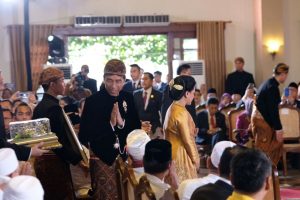 Salam hormat Presiden Jokowi kepada tamu undangan di Graha Saba, Sumber, Solo, Rabu 8 November 2017. (credit-Dok.%20Rima/Fokusjateng.com)