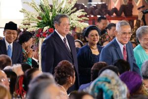 Mantan Presiden Susilo Bambang Yudhoyono beserta istri dan mantan Wapres Tri Sutrisno hadir dalam acara pernikahan putri Presiden Jokowi di Gedung Graha Saba, Sumber, Solo, Rabu 8 November 2017. (credit-Dok.%20Rima/Fokusjateng.com)