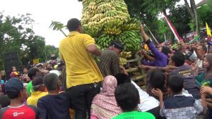 Warga berebut hasil bumi pada kirab budaya Seabad Kabupaten Karanganyar, Sabtu sore 11 November 2017. (credit-Suroto/Fokusjateng.com)