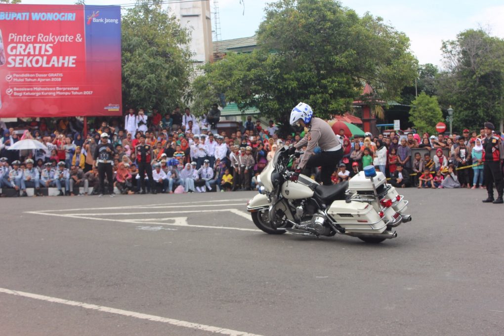 FOKUS JATENG-WONOGIRI-Tampilan Polwan Moge Diajeng Candi memukau penonton saat pamer kebolehan di sela-sela gelar lomba polisi cilik (pocil) dan Patroli Keamanan Sekolah (PKS) tahap II se-Kabupaten Wonogiri, Selasa 14 November 2017. Kapolres Wonogiri AKBP Muhammad Tora, SH, SIK melalui Kasubag Humas Polres Wonogiri AKP Haryanto mengatakan, lomba yang digelar di pendapa kabupaten ini diikuti 632 orang pocil dan 383 anggota PKS asal 12 kecamtan.
