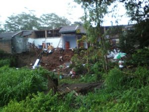 Penyebab rumah rusak di Perum Griya Ringin Sakti Asri Randusari, Teras, Boyolali, diduga lantaran talut belakang rumah tidak kuat menahan air hujan Kamis 16 November 2017. (credit-Yulianto/Fokusjateng.com)