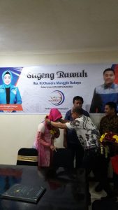 Penyambutan Ketum UKM IKM Nusantara Candra Manggih Rahayu dengan pengalungan bunga (credit-Ichwan%20Prihantoro/Fokusjateng.com)