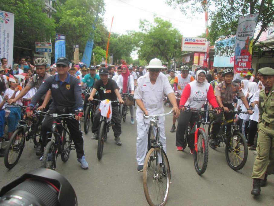 FOKUS JATENG-SRAGEN-Sebanyak 12.400 peserta mengikuti gowes Pesona Nusantara 2017 di Kabupaten Sragen, Minggu 19 November 2017. Event ini sebuah gerakan untuk kembali bersepeda ontel. Dengan tujuan membangkitkan gairah olahraga di tengah masyarakat.