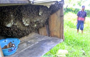 ”Untuk mencari bibitnya ya harus berburu ke desa desa hingga ke dasar jurang,” katanya Senin 20 November 2017. Lebah tersebut, setelah masuk kotak, akan mencari makan sendiri.Beruntung, di halaman rumah, kebun dan ladang sekitar banyak sumber nektar sebagai makanan utama lebah.