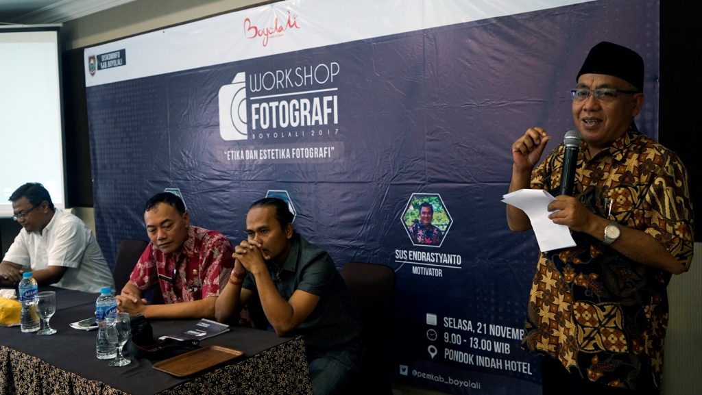 Untuk memberi bekal pengetahuan dan informasi bidang fotografi, Dinas Komunikasi dan Informatika (Diskominfo) Boyolali menggelar Workshop Fotografi Boyolali 2017. Dengan mengambil tema “Etika dan Estetika Fotografi”, workhshop digelar di Pondok Indah Hotel Boyolali, Selasa 21 November 2017.