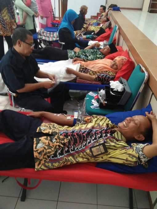 Donor darah diawali oleh Bupati Sragen Kusdinar Yuni Untung Sukowati dan diikuti pejabat lain. Terlihat juga anggota TNI beserta istri, para istri polisi atau Bhayangkari, guru, dan warga umum. Bakti sosial donor darah ini digelar Rabu 22 November 2017 pukul 08.00 WIB.