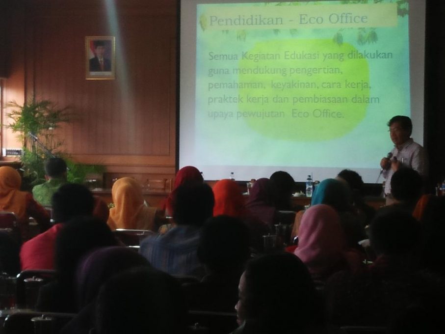 FOKUS JATENG-KLATEN-Peningkatan efisiensi dengan jalan menghindari pemborosan biaya, seperti pada pengunaan pemakaian air, bahan bakar dan listrik ditekankan Eco Office. Selain itu juga menciptakan lingkungan yang bersih dan menyehatkan dengan cara pengendalian penggunaan sumber daya dan pencemaran.