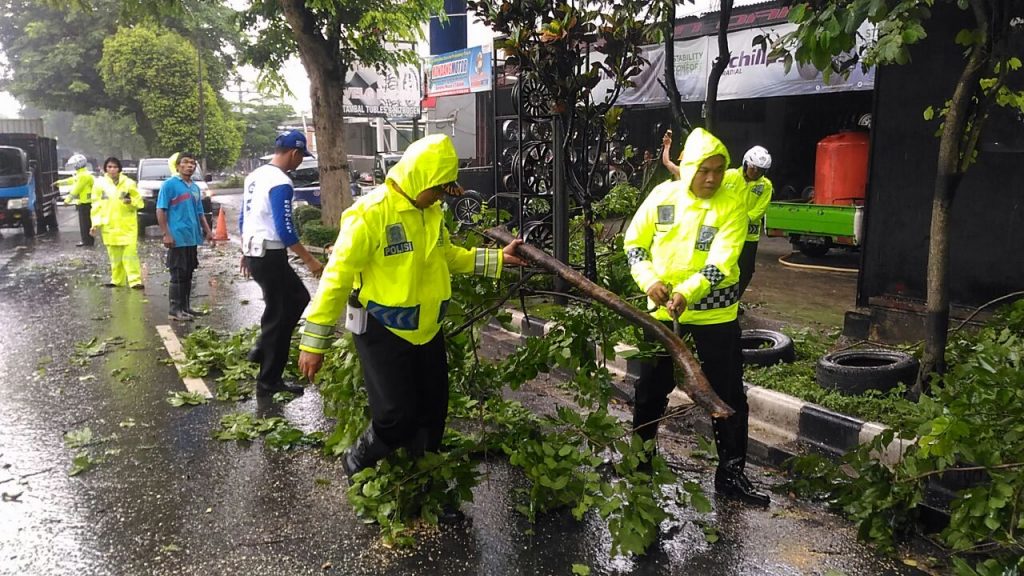 Hal itu sekaligus agar tidak menghalangi pengguna jalan. Sebagian petugas Sat Lantas mengatur arus kendaraan. Pengendara diminta berhati- hati melintas di sekitar area pemangasan pohon agar tidak tertimpa dahan dan ranting yang dipotong.
