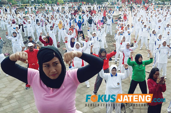 FOKUS JATENG – BOYOLALI – Penyelenggaraan event Sport for All Expo 2017 memasuki hari kedua pada Minggu (3/12/2017). Agenda padat selama satu hari ini diawali dengan rangkaian kegiatan senam di Alun-alun Kidul Boyolali semenjak pagi. Gelaran Senam Sehat Indonesia (SSI), senam Persatuan Olahraga Pernapasan Indonesia (PORPI) yang diikuti ribuan peserta dari berbagai wilayah di Jawa Tengah. Sebagai pemuncak gelaran senam yakni senam yang dipandu instruktur senam nasional, Yurike Prastika.