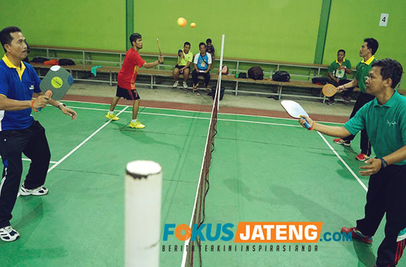 ”Tonnis perpaduan badminton dan tennis lapangan. Ton dari badminton yang menggunakan lapangan badminton, sedang nnis yang mengambil gerak dasar tennis lapangan,” terang tim dari FIK UNNES, Tri Nurharsono.