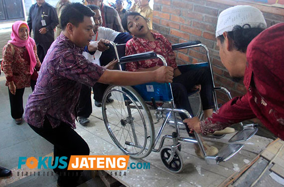 Selanjutnya wabup juga memberikan bantuan berupa alat bantu dengar dan kursi roda untuk kaum disabilitas. Di hadapan wabup, kaum yang kekurangan fisik ini menampilkan bakat antara lain pantomim, menyanyi, dan menari. Tidak hanya menampilkan bakat yang dimiliki, namun acara tersebut juga menampilkan hasil kreatifitas kaum disabilitas dalam berbagai kerajinan tangan.