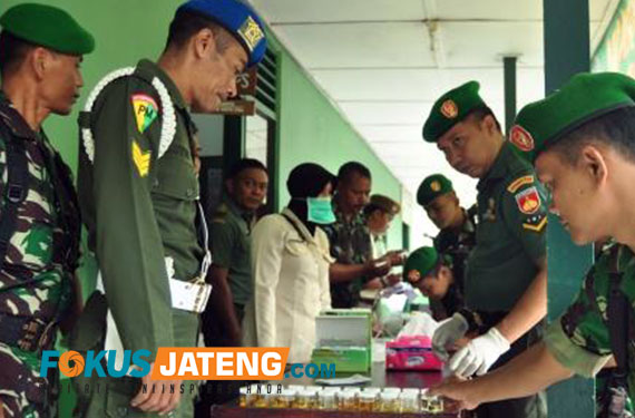 FOKUS JATENG – BOYOLALI – Kodim 0724/Boyolali menggelar tes urine dan cek HIV/Aids terhadap 100 personelnya di makodim setempat Senin 11 Desember 2017. Kegiatan itu dilakukan secara mendadak. Setelah apel berlangsung, anggota dipanggil satu persatu secara acak. Peserta mencakup anggota di seluruh Koramil se- Boyolali.