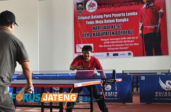 FOKUS JATENG – BOYOLALI – Salah satu rangkaian kegiatan HUT DPRD Boyolali ke-67 adalah pertandingan tenis meja. Kegiatan yang digelar di Balai Sidang Mahesa, Boyolali, Minggu 17 Desember 2017 ini diikuti 64 petenis.