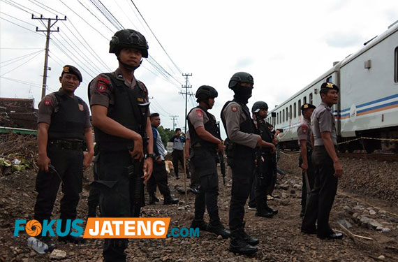 FOKUS JATENG – KARANGANYAR – Jalur transportasi kereta api (KA) menjadi salah satu prioritas pengamanan jelang Natal dan tahun baru. Untuk itu, Polres Karanganyar melakukan pengecekan perlintasan KA, di Stasiun Palur, Jaten, Rabu 20 Desember 2017. Pengecekan dengan puluhan personel serta anjing pelacak ini untuk memastikan jalur rel KA aman.