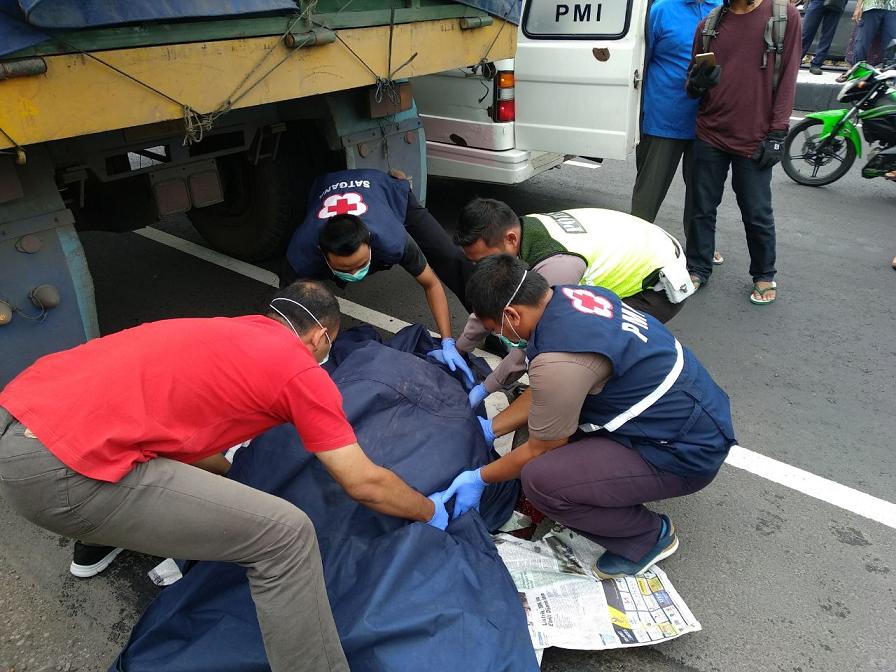 FOKUS JATENG-KLATEN-Seorang pemotor tewas seketika setelah terlindas truk gandeng di jalan raya Solo-Jogja, Jumat 22 Desember 2017. Korban sempat terseret puluhan meter hingga kondisinya hancur.