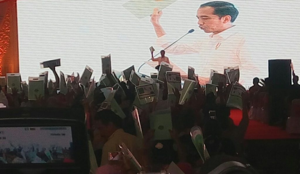Presiden Jokowi dalam sambutannya bahwa hari ini di lima Propinsi juga dibagikan 705 ribu bidang sertifikat hak atas tanah yakni Yogyakarta, Jateng, Sumbar, Baubau Sulawesi Tenggara, dan Bangkulu.