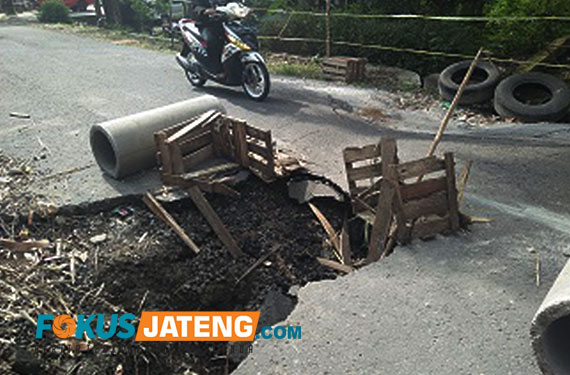“Ini akses jalan menuju Boyolali dan Solo atau ke arah Mundu. Kalau tidak segera diperbaiki kasihan para pengguna jalan dan para petani yang menggunakan air. Sebab, jalan ambles itu di bawahnya ada saluran air yang digunakan beberapa dukuh,” tandasnya