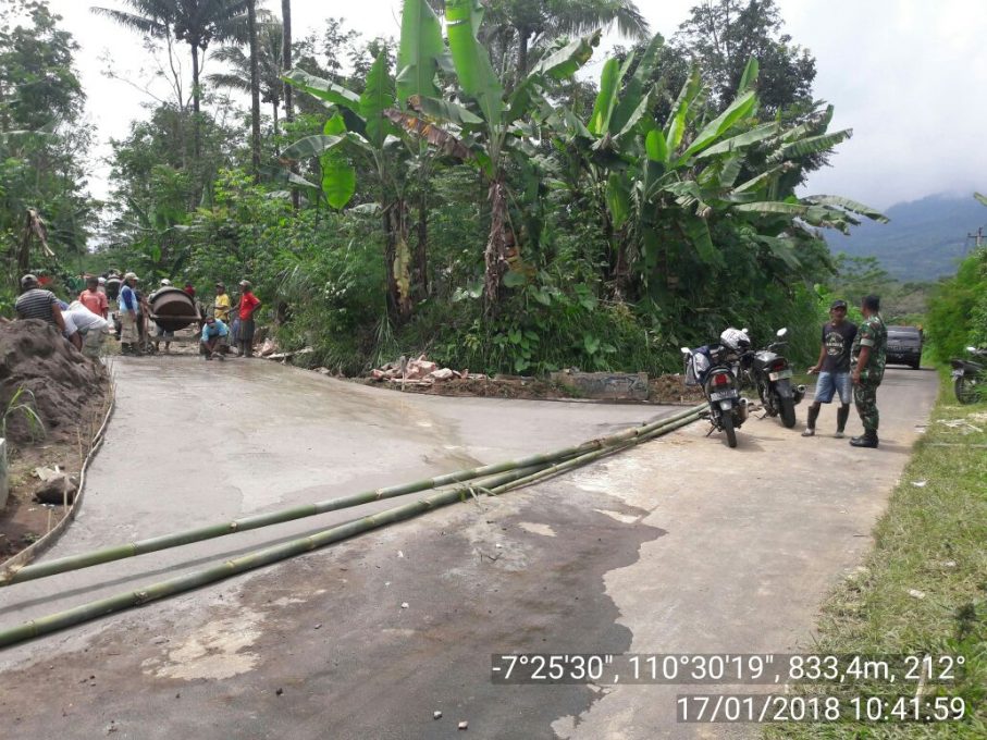 Serda Andi Prabowo Sakti, Babinsa yang melakukan pemantauan mengatakan, betonisasi jalan ini sepanjang 400 meter dengan lebar 4 meter. Betonisasi yang dilaksanakan warga menggunakan dana desa.