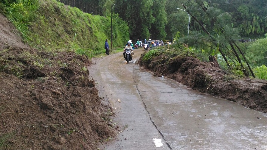 FOKUS JATENG-BOYOLALI-Hujan deras yang mengguyur wilayah lereng Gunung Merapi-Merbabu, Selo, Boyolali, menyebabkan tanah longsor Minggu pagi 21 Januari 2018. Tanah longsor ini menutup akses wisata Solo-Selo-Borobudur (SSB) sekitar sejam. Sebab, gundukan tanah akibat longsor tebing menutup badan jalan.