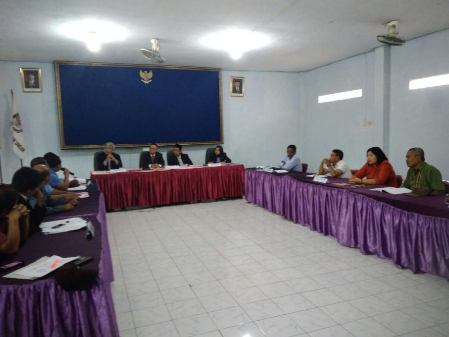FOKUS JATENG-KARANGANYAR-Ketua Panwaslu Karanganyar Kustawa menjalani Sidang kode etik atas pelaporan Forum Masyarakat Karanganyar (Formaska). Sidang ini dilakukan oleh Dewan Kehormatan Penyelenggara Pemilu (DKPP) di kantor Komisi Pemilihan Umum Daerah (KPUD) Karanganyar, Senin 5 Februari 2018.