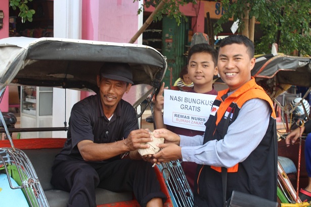 Dwi Pujiyanto, Relawan Inspirasi Rumah Zakat sekaligus koordinator kegiatan gerakan Menebar Nasi Bungkus (Menabung) Gratis mengatakan bahwa nasi bungkus ini menyasar para dhuafa yang masih memiliki kemauan untuk berusaha menjemput rizki, seperti pemulung, tukang becak, pemungut sampah, dan lain-lain.