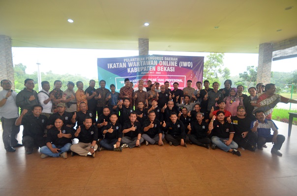 FOKUS JATENG-NASIONAL-Pengurus Ikatan Wartawan Online (IWO) Kabupaten Bekasi masa jabatan 2017-2023 dilantik Pengurus Pusat IWO. Acara yang digelar di RM Alam Sari, Kota Deltamas, Cikarang Pusat, Jumat 9 Februari 2018, ini dihadiri pendiri sekaligus pengurus pusat IWO.