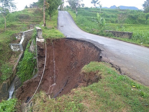 FOKUS JATENG-WONOGIRI-Hujan dengan intensitas sedang yang terjadi di wilayah Kecamatan Bulukerto, Kabupaten Wonogiri, telah menyebabkan ambrolnya ruas jalan Bulukerto-Slogohimo. Bencana alam tersebut terjadi Senin 12 Februari 2018 sekitar pukul 05.00 WIB.