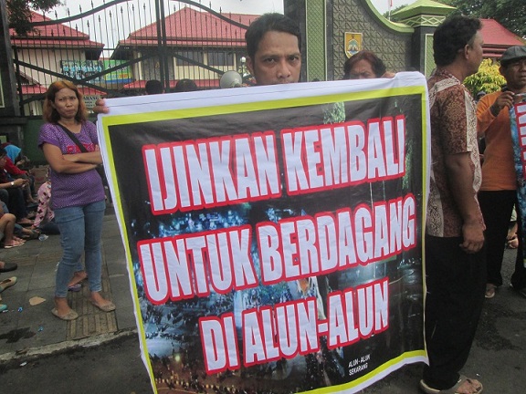 Seperti diberitakan sebelumnya, aksi damai dilakukan ratusan pedagang yang biasa menempati Alun-Alun Sragen ke Pemkab Sragen. Mereka menyampaikan aspirasi bisa menempati lagi alun-alun setelah direnovasi.
